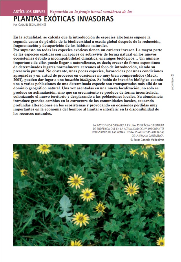 Expansión en la franja litoral cantábrica de las plantas exóticas invasoras